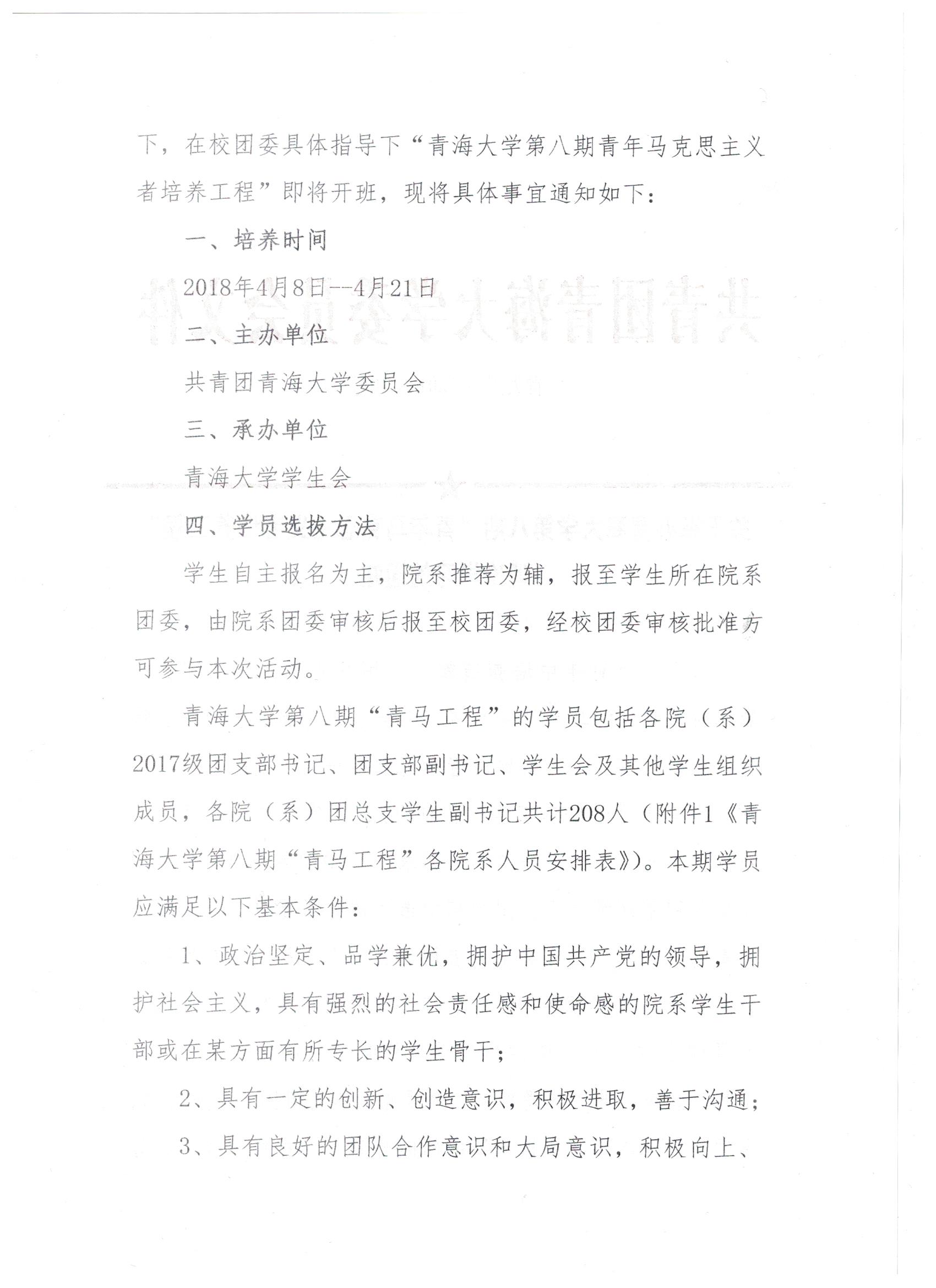 关于举办青海大学第八期“青年马克思主义者培养工程”理论学习的通知