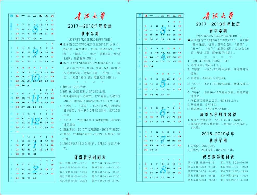 2017-2018学年秋季学期校历