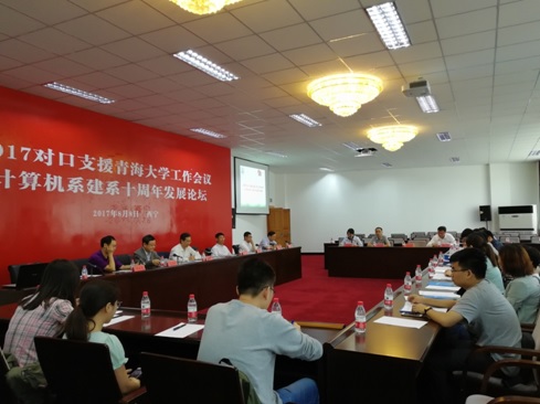 2017年8月8日下午15:30,计算机系组织承办了“2017年对口支援青海大学工作会议——计算机系建系十周年发展论坛”,会议在青海大学科技馆二楼一号会议室举行,由计算机系常务副主任王晓英主持,清华大学党委常务副书记、副校长姜胜耀教授,青海大学党委书记俞红贤教授,清华大学计算机科学与技术系主任、中国工程院院士吴建平院士,清华大学电力系统及大型发电设备安全控制和仿真国家重点实验室主任梁曦东教授,清华大学计算机科学与技术系教授、bet878365主任陈文光教授,清华大学发展规划处处长方红卫教授,清华大学对口支援办公室副主任朱涛教授,以及青海大学计算机系教师代表和学生代表参加了此次研讨会。